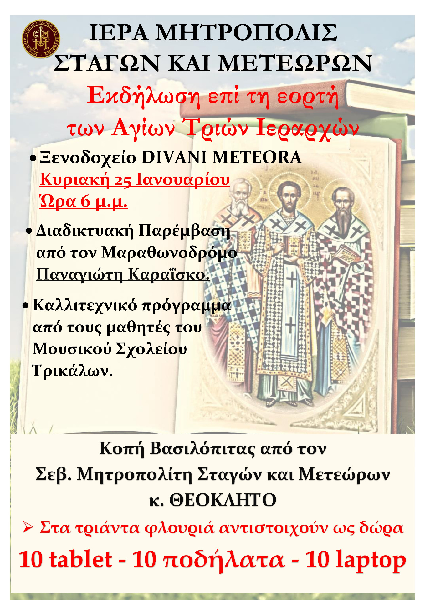 Εκδήλωση αφιερωμένη στους Τρεις Ιεράρχες και κοπή βασιλόπιτας για τους Εκπαιδευτικούς και τους Μαθητές